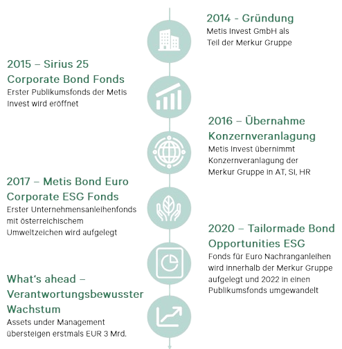Die Merkur Versicherung AG wurde im Jahr 1798 als „Institut zur Unterstützung kranker, armer, dienstloser, Alters und Gebrechlichkeiten wegen zum Dienen unfähig gewordener Handlungsdiener in Grätz“ gegründet. Die Merkur ist damit nicht nur die älteste Versicherung Österreichs, sondern die erste Versicherung, die sich ganz der sozialen Absicherung der Menschen gewidmet hat. Heute ist die Merkur eine der führenden Gesundheitsversicherungen Österreichs und in südosteuropäischen Nachbarländern. Metis ist Competence Center für Versicherungsveranlagung in der Merkur Gruppe und deckt dabei den gesamten Investmentprozess von der Strategie über Portfoliokonstruktion bis hin zur Implementierung und Fondsselektion ab. Kundinnen und Kunden können davon im Rahmen von Dachfondslösungen sowie maßgeschneiderten Veranlagungsstrategien profitieren - die Metis begleitet Sie als kompetenter und zuverlässiger Partner durch die Hochs und Tiefs an den Kapitalmärkten.